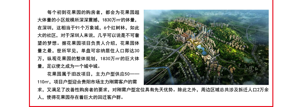 花果园自2010年11月27日盛大开盘以来,一路热销,屡屡刷新贵阳楼市的成交记录。入市21个月内,就卖了6万套房子,销售金额248个亿,业内人士称其为"花果园速度"。