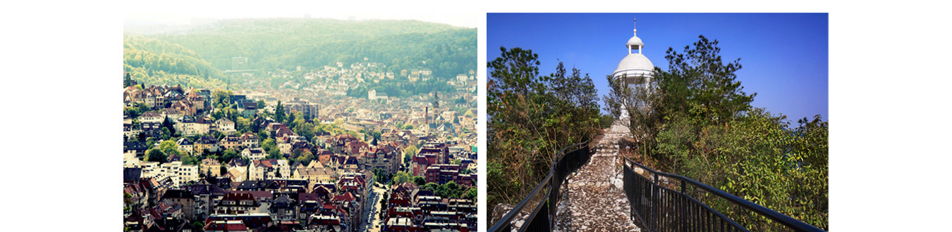 半山小镇,顾名思义,自然和山脱离不了关系,小镇座落于黔灵山脉,左右被黔香山和兰香山两大原始山体公园环抱。可能很多人还不清楚这两座山的来源,它们同属黔灵山脉,坐拥"黔南第一山"的福地洞天,拥有数百年的历史。多年的岁月,孕育了极为珍贵的原始山林,山上景色葱茏,空气清爽,堪称贵阳市区不可多得的绿色氧吧。半山小镇选址于此后,还将这两座原始山脉进行全方位的规划和保护性开发,修建成山体公园,增设了很多基础设施,铺设了登山步道和山顶观景台。经过改造后的两座山体公园,绿茵繁茂,郁郁葱葱,不仅是半山小镇的怡情美景,更成为贵阳市民们休闲登山,观景眺望的绝佳之地。