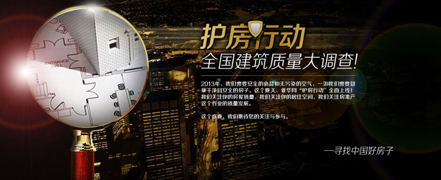 您的身边是否会出现"楼脆脆""楼歪歪"等事件?您倾力购买的房子在交楼后是否会出现各种问题让你烦心?时下,房地产事业在飞速发展,伴随着的房屋质量问题也很突出。2013年,护房在行动,我们居住的环境所需要的主题是"安全与放心"。