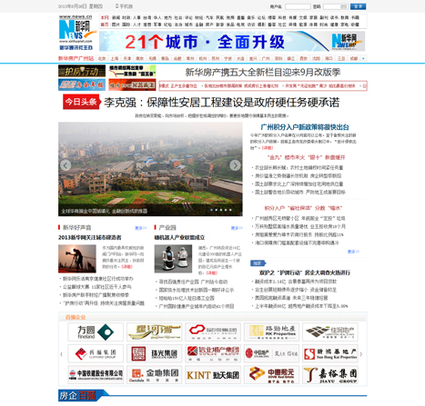新华房产(house.news.cn)作为中国房地产第一媒体,秉承新华网"传播中国、报道世界、权威声音、亲切表达"的新闻宗旨,将用独特的视角和专业的报道,打造权威、有深度的地产新闻,截至9月,在全国已开设21个地方站。作为新华房产的第一阵营,广州站已于7月20日测试上线,并与9月29日正式改版上线,以全新姿态,打造"植根广州、服务广州"的权威房地产媒体平台。[