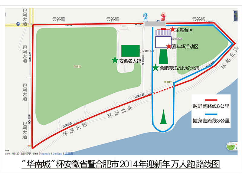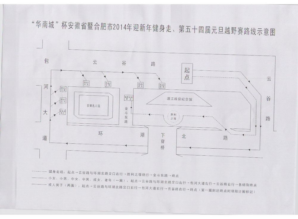 | “华南城”杯安徽省暨合肥市2014年迎新年健康走、第五十四届元旦越野赛路线示意图 | ||||||||
