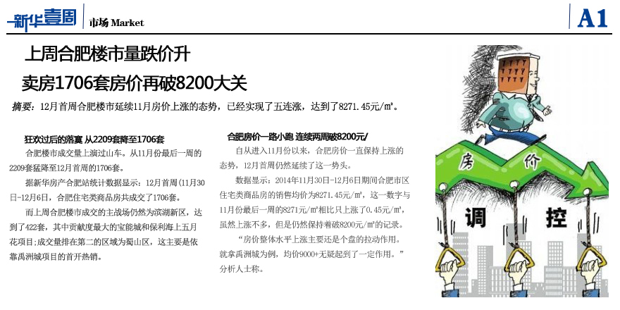 市场:上周合肥楼市量跌价