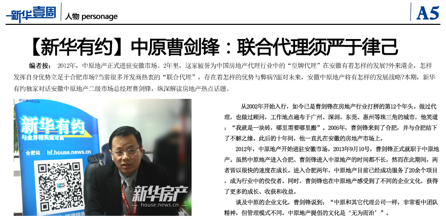 中原曹剑锋:联合代理须严于律己