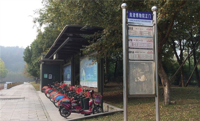 新华房产记者看到,在距离朗诗美丽洲小区大约200米左右的良渚博物院门前,的确配备了村内循环公交线路491A路、余杭线478路,以及来往于彭公北与三墩的B支8路。公交站点旁还有一个公共自行车租借点。