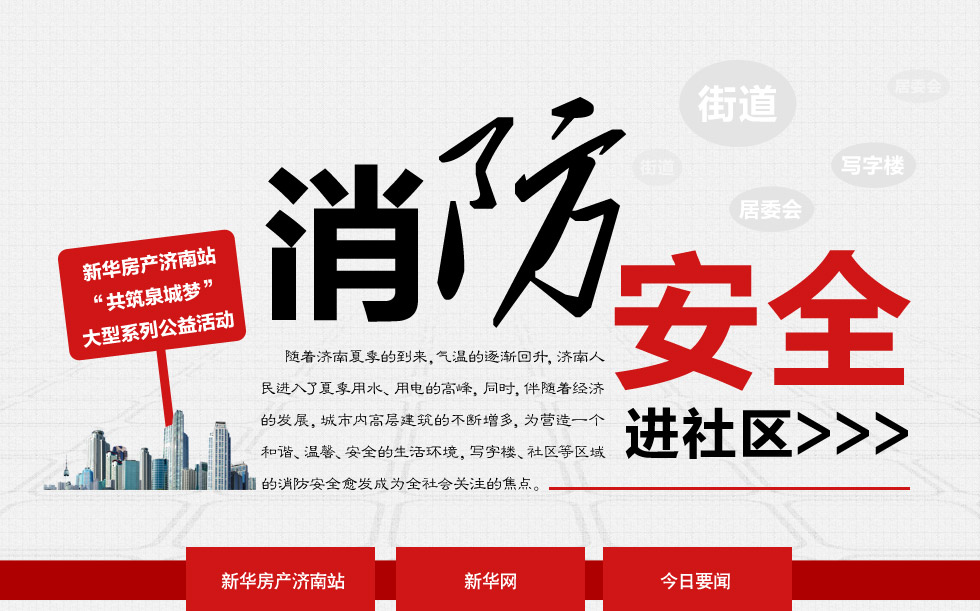 夏季是火灾隐患的高发期。为了让市民了解更多的消防安全知识,加强防范意识,新华网-新华房产济南站联合济南市公安消防支队...[详情点击]
