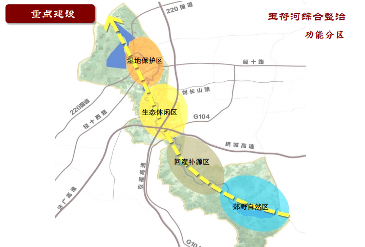 根据现状污水情况,玉符河将分区域确定各类污染源的处理方式,确定排水口方向、排水体制及排水方式,沿线布置污水管网50公里,选择合适地点建设合理规模及标准的污水处理厂。根据4个功能区的不同特点,充分利用水体、植物、园路等要素,实施重要节点、重点河段的景观建设和沿线绿化,结合流域村庄整合及两岸功能发展生态农业,突出玉符河生态廊道的特色。同时规划建设必要的公共服务设施,沿河建设停车场、服务区等。 记者了解到,玉符河治理工程将沿线打造为四个景观带, 分别为“山水相依、渔耕井然”的郊野自然景观带,“溪流相连、阡陌辉映”的回灌补源区,“碧水回环、绿岛映秀”的生态休闲区以及“林草丰茂、鱼翔浅底”的生态湿地景观带。工程计划3年内完成。今冬明春完成河槽扩挖、岸坡整理等工程,同时开展绿化造林等工作。2015年底前全面完成沿线桥梁道路、污水处理、景观打造、环境配套,将玉符河打造成为一条生态景观河道。 详情点击