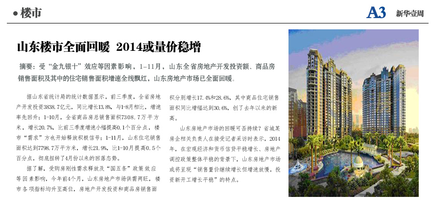 山东楼市全面回暖 2014或量价稳增