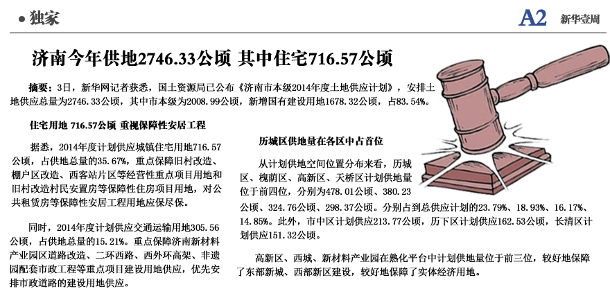济南今年计划供地总量2746.33公顷