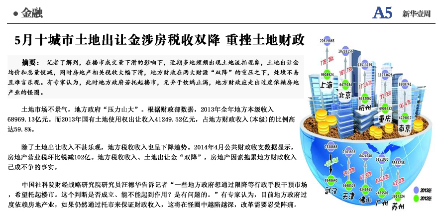 5月十城市土地出让金涉房税收双降/span>