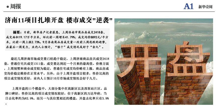 济11项目扎堆开盘 楼市成交"逆袭"