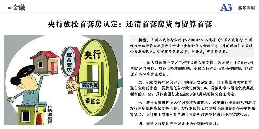央行新政:还清首套房贷再贷算首套