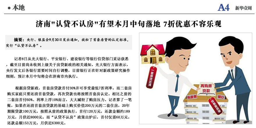 济南"认贷不认房"有望本月中旬落地