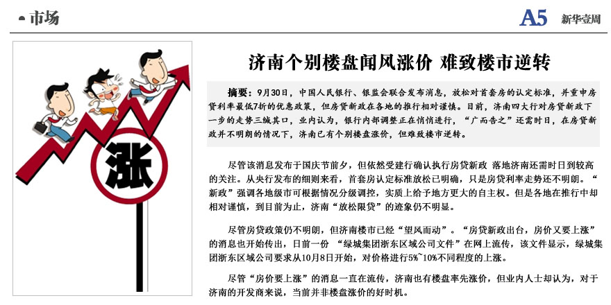 济南个别楼盘闻风涨价 难致楼市逆转