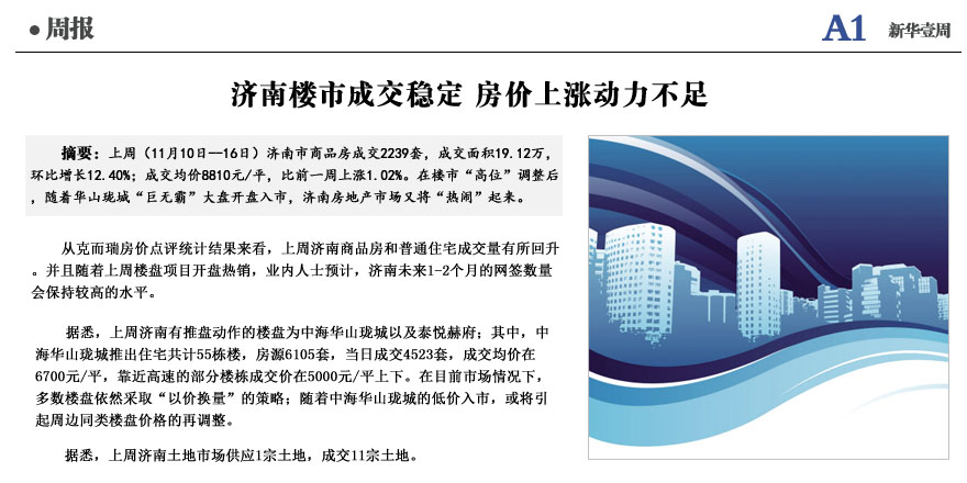 济南楼市成交稳定 房价上涨动力不足