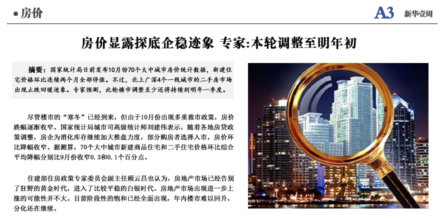 房价显露企稳迹象 本轮调整至明年初