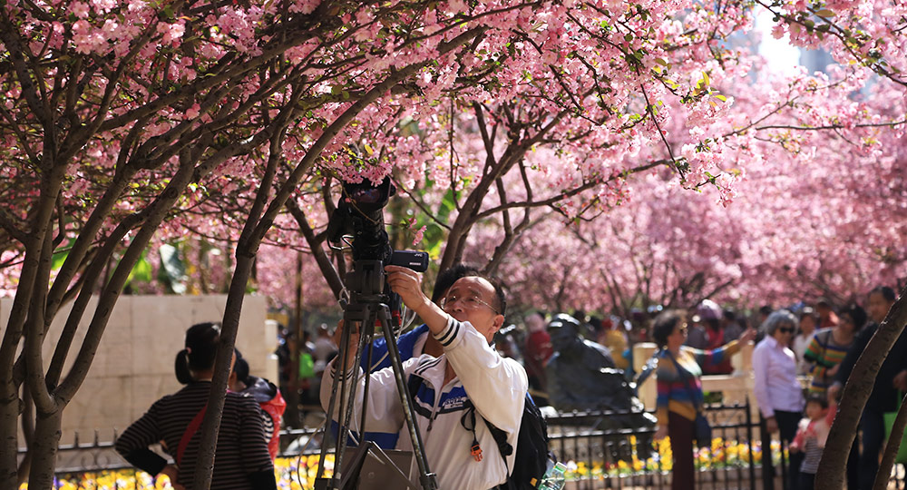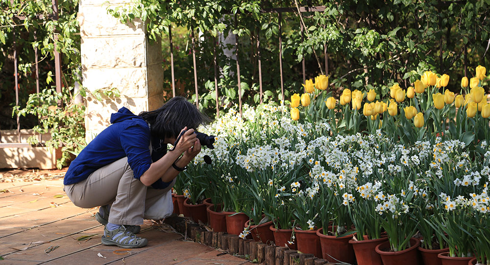 在熙攘的花潮里,摄友捕捉着心仪的画面。