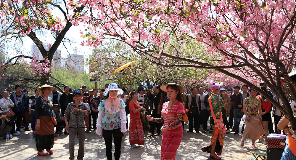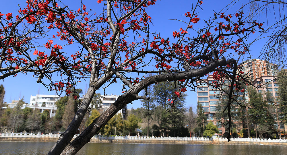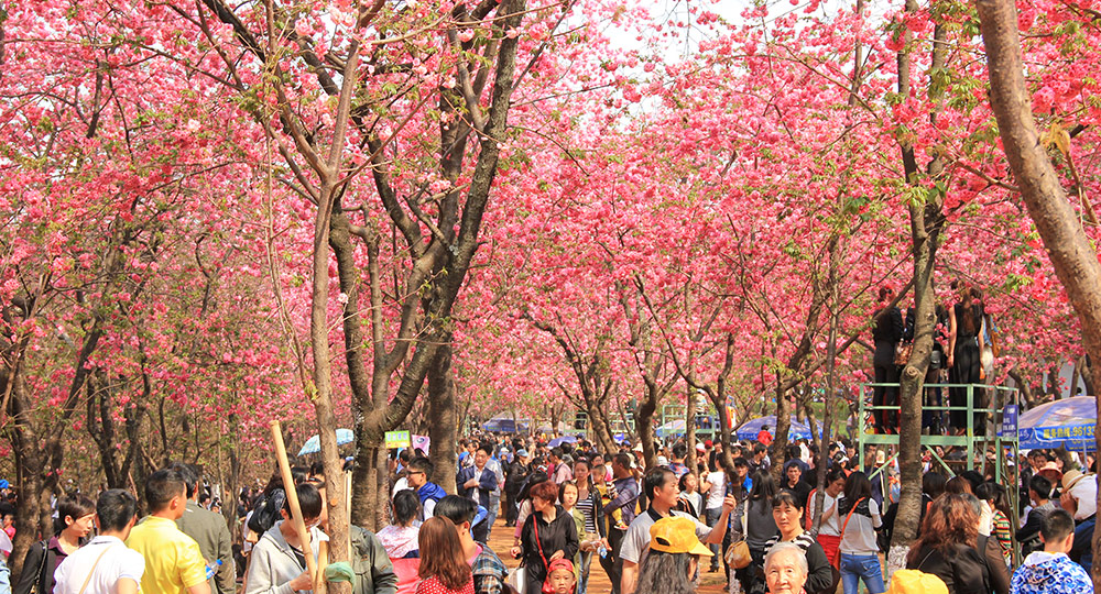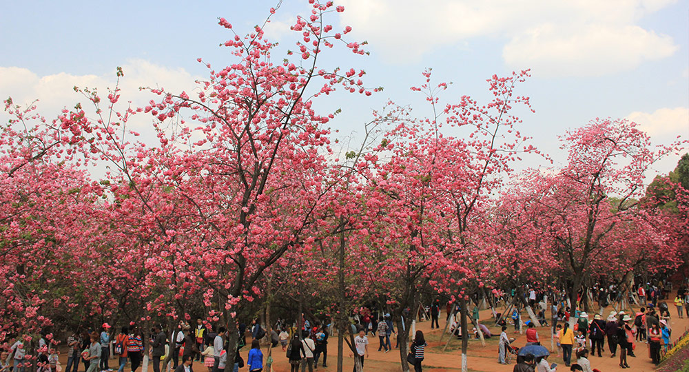 "昆明春天的第一声啼鸣是从樱花潮里发出的。"