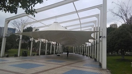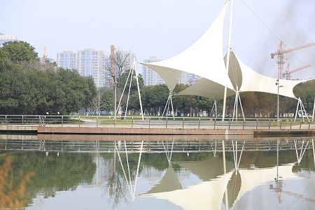 面积约23万方,距离项目约为500米。公园沿河而建,错落分布着帆布式亭棚。