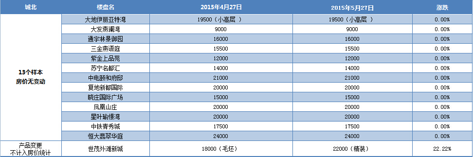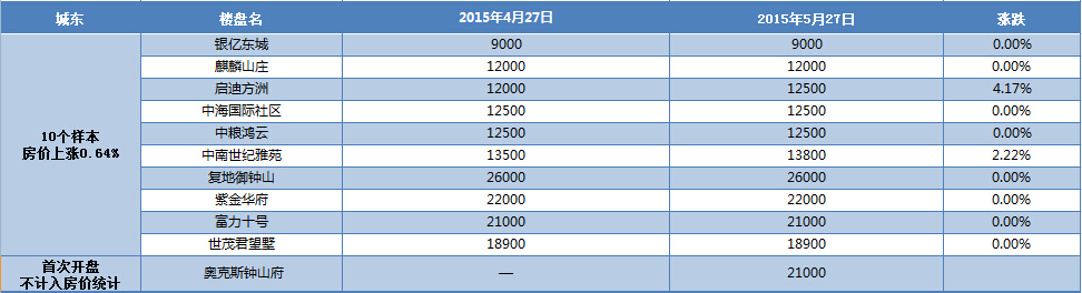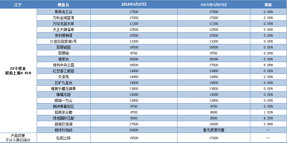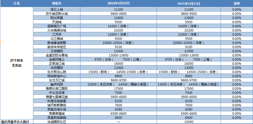 新华房产统计发现,2015年5月南京楼市八大板块中,河西、城南、城东、江宁房价出现小幅上涨,其余板块房价无变动。综合结果,5月房价环比微涨0.43%。 [详细]