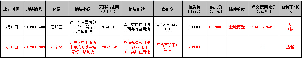 据新华房产统计,2015年5月,南京市(高淳、溧水除外)土地交易市场仅成交1幅地块,总成交面积仅有7.6万平方米,市国土局共计吸金20.28亿元,同比去年5月(总成交面积10.1万平方米,市国土局共计吸金2.32亿元),成交面积下降24.75%,出让总金额上涨774.13%。 与成交市场的冷清相反,5月土地市场的供应也表现平平。 [详细]