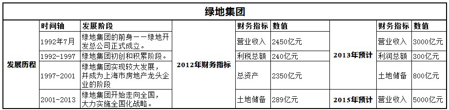 绿地集团公布2013年上半年实现业务经营收入1425亿元。 其中,房地产业务实现预销售金额653亿元。对此,绿地集团董事长、总裁张玉良表示:“绿地仍然看好中长期发展前景,发展步伐不会减慢。全年业务经营收入将达到3300亿,较上年增长30%以上。”
