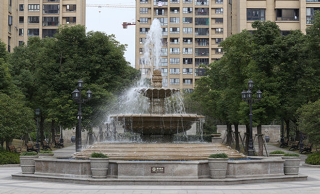 小区内绿化布置以生态、绿色为先导,充分利用其楼间距的距离,形成纵深交错,层层合围的平面布局。一路走来,花卉植物、雕像喷泉、卵石路径,满目皆是。