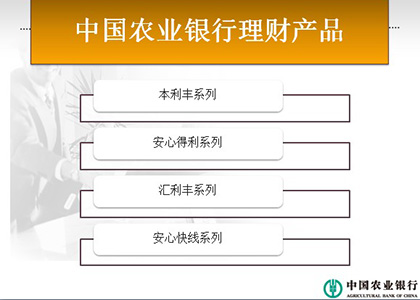 中国农业银行致力于建设“面向‘三农’、城乡联动、融入国际、服务多元”的一流商业银行,通过23000多家境内机构、12家境外机构以及网上银行、电话银行、掌上银行等分销渠道,向广大客户提供优质的金融产品和服务。