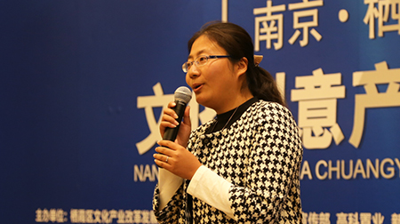 鉴于此,新华网新华房产特别策划2014南京栖霞文化创意产业前沿论坛,下面有请栖霞区委宣传部副部长杜巍女士上台致辞。