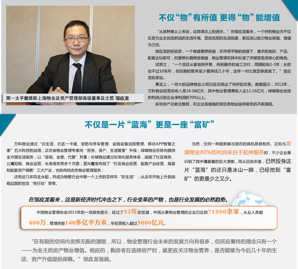 龙湖地产也从物业管理上发力,为业主提供“好的服务”。2012年,是龙湖物业成立15周年之际,其正式发布《龙湖物业标准(2012版)》白皮书,成为国内首家向社会公开发布管理和服务标准的物业企业。[详细]
