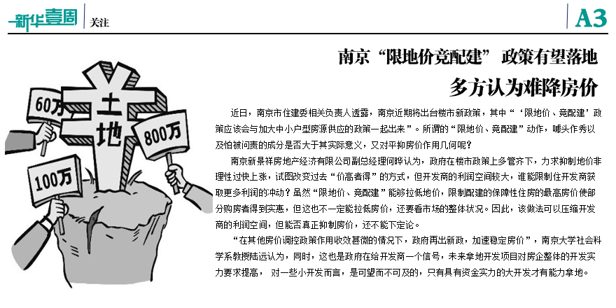 南京“限地价竞配建” 政策有望落地