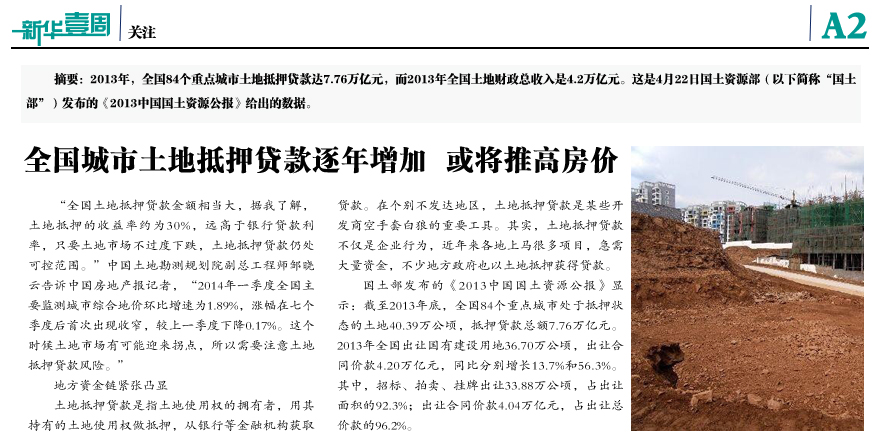 全国城市土地抵押贷款逐年增加