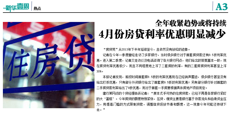 4月份房贷利率优惠明显减少