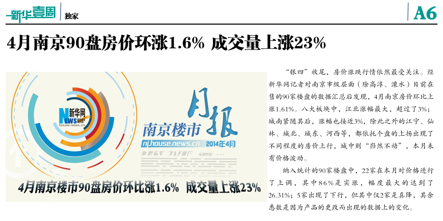 4月南京90盘房价环涨1.6%