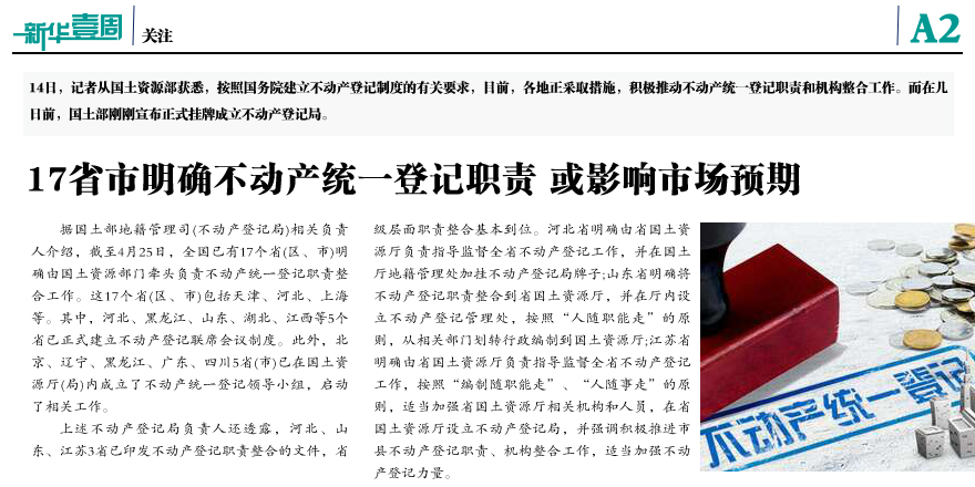 17省市明确不动产统一登记职责