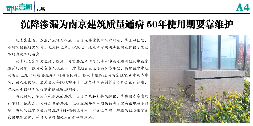 沉降渗漏为南京建筑质量通病