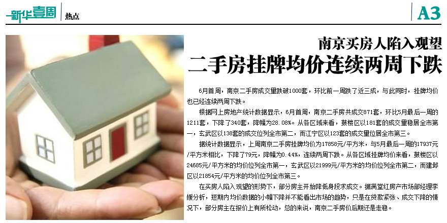 南京二手房挂牌均价连跌