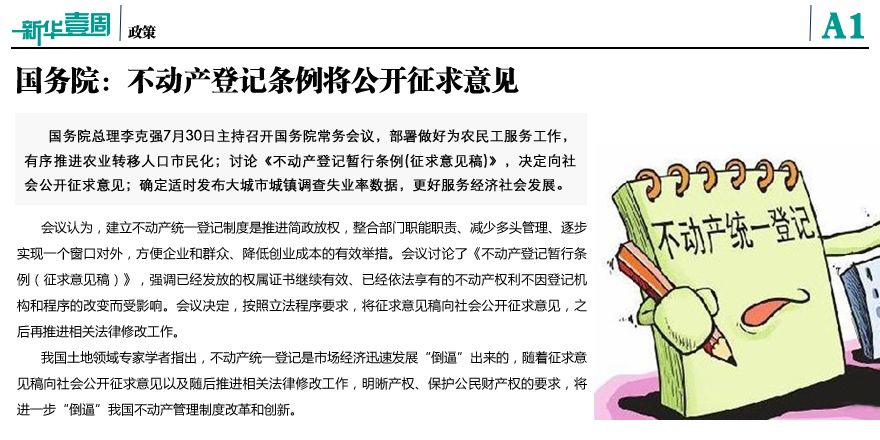 不动产登记条例将公开征求意见