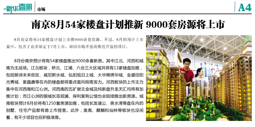 南京8月54家楼盘计划推新