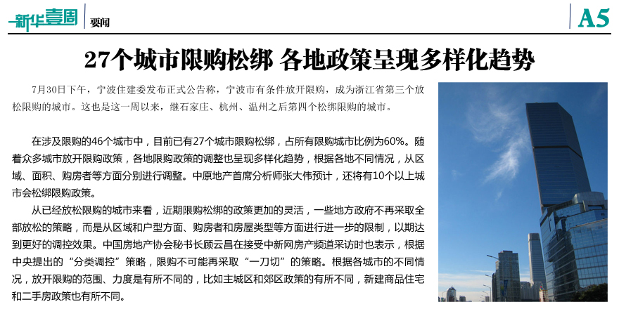 27个城市限购松绑