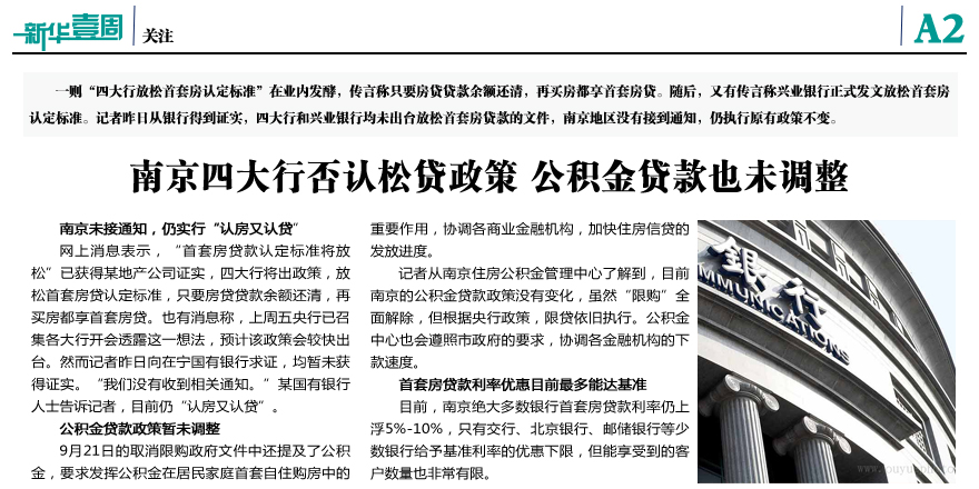 南京四大行否认松贷政策
