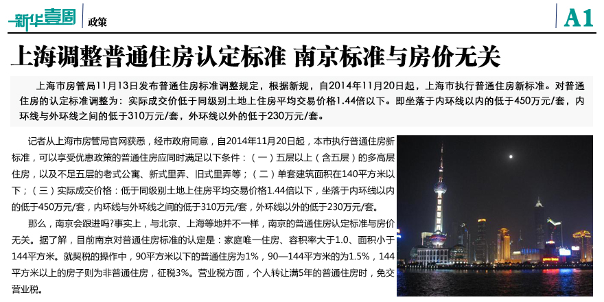 上海调整普通住房认定标准