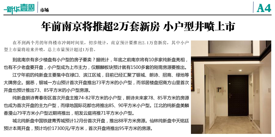 年前南京将推超2万套新房