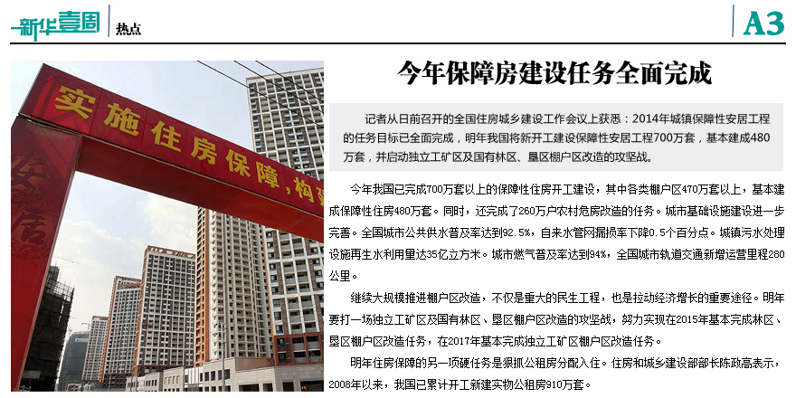 今年保障房任务完成 明年建七百万套