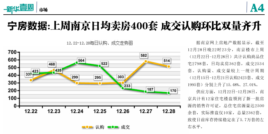 上周南京日均卖房400套 双量齐升