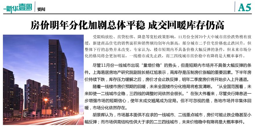 房价明年分化加剧总体平稳