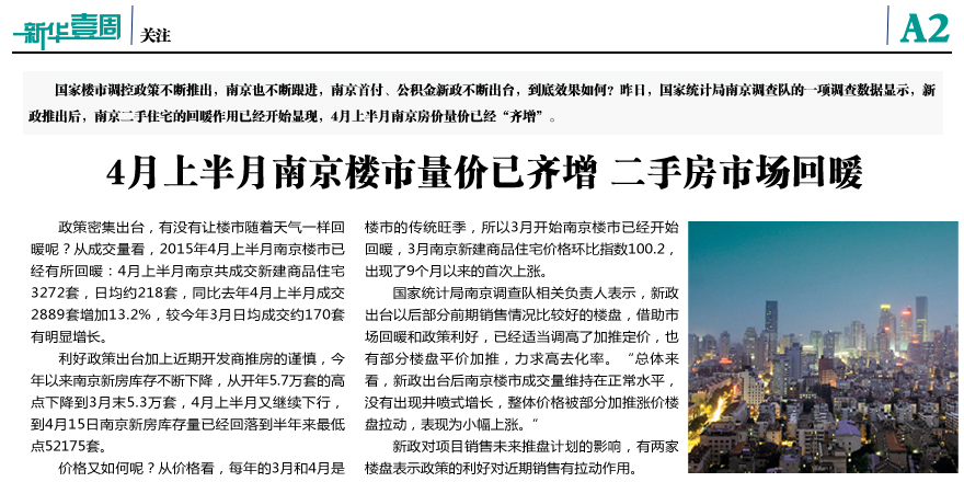 4月上半月南京楼市量价齐增