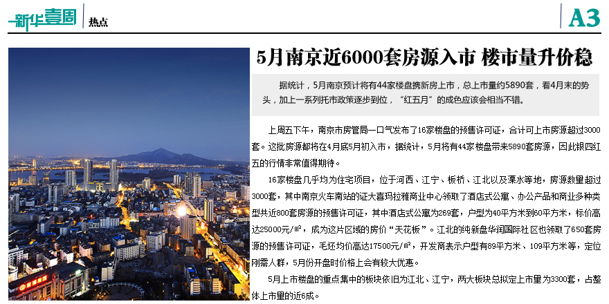 5月南京将有近6000套房源入市