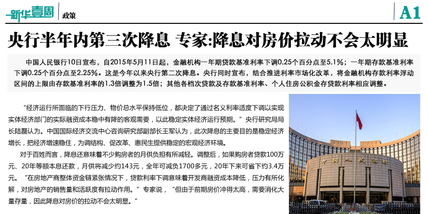 央行半年内第三次降息