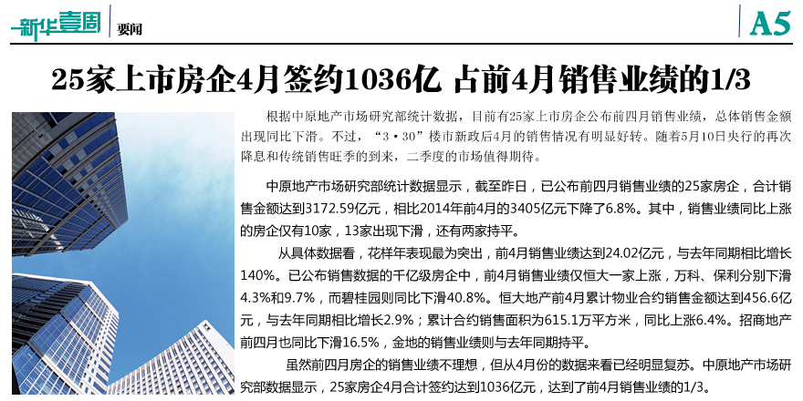 25家上市房企4月签约1036亿