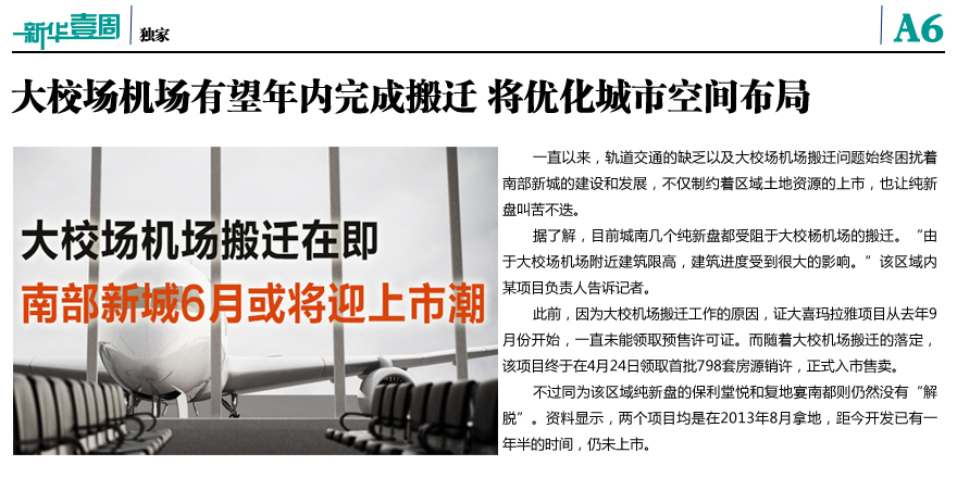 大校场机场有望年内完成搬迁